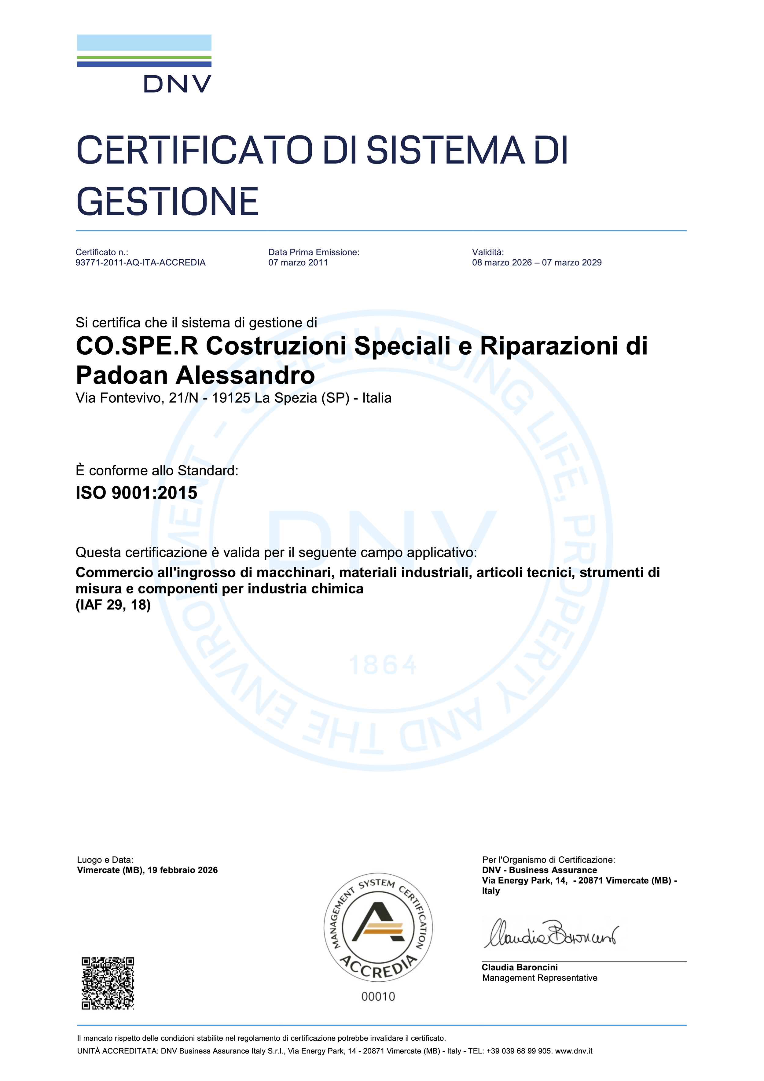 La Cosper, certa di offrire un valore aggiunto sia alla propria azienda che alla clientela, ha scelto e ottenuto la certificazione UNI EN ISO 9001:2015, riconoscimento internazionale che attesta l’impegno costante nel garantire standard elevati di qualità e affidabilità.
